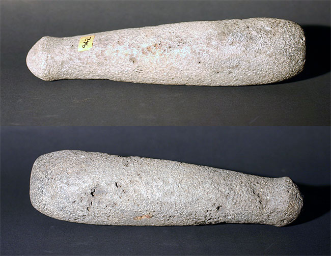 Pre contact Hawaiian basalt plummet sinker or pohakialoa, coral encrusted.